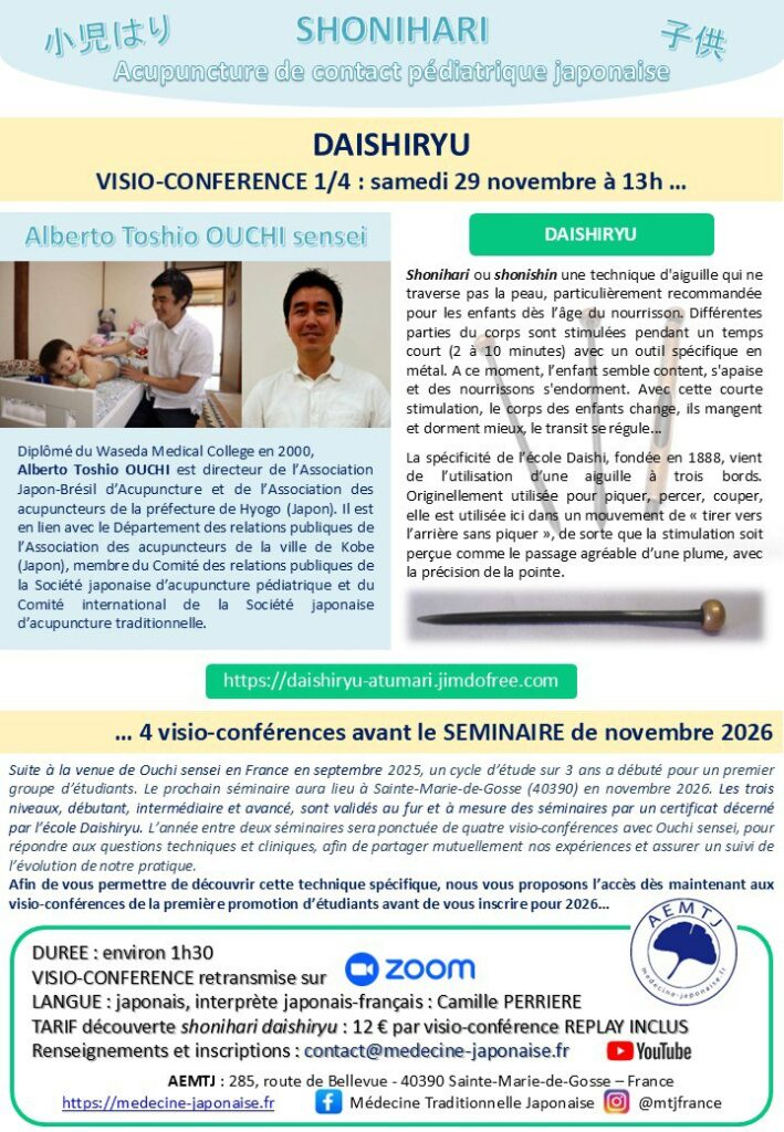 Début 2026 - 3 visio-conférences avant le SEMINAIRE de novembre 2026. Suite à la venue de Ouchi sensei en France en septembre 2025, un cycle d'étude sur 3 ans a débuté pour un premier groupe d'étudiants.